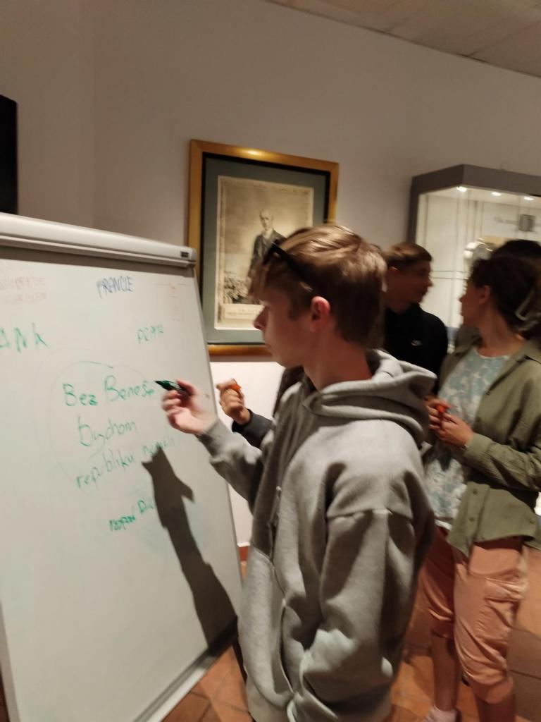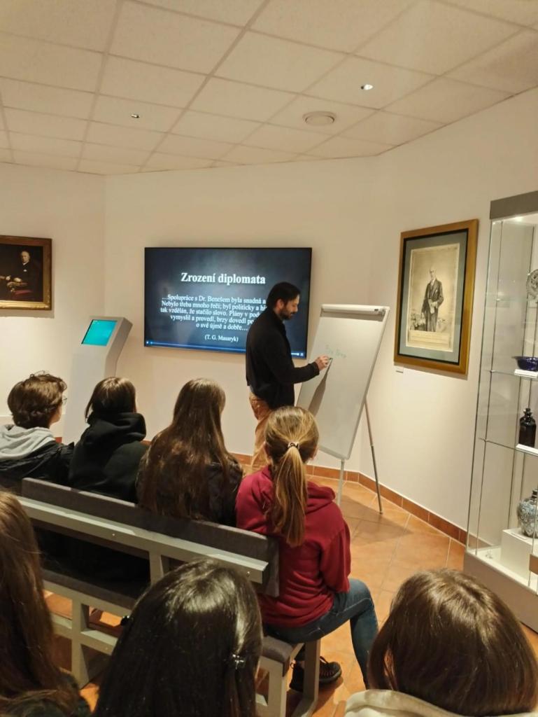 Pod vedením lektora jsme si zábavnou formou připomněli podíl E. Beneše na vzniku samostatného Československa. Dozvěděli jsme se zajímavé skutečnosti o těžkých rozhodnutích, před která ho dějiny jako druhého československého prezidenta postavily. Poznali jsme i jeho osobní život, zejména soužití s manželkou Hanou.