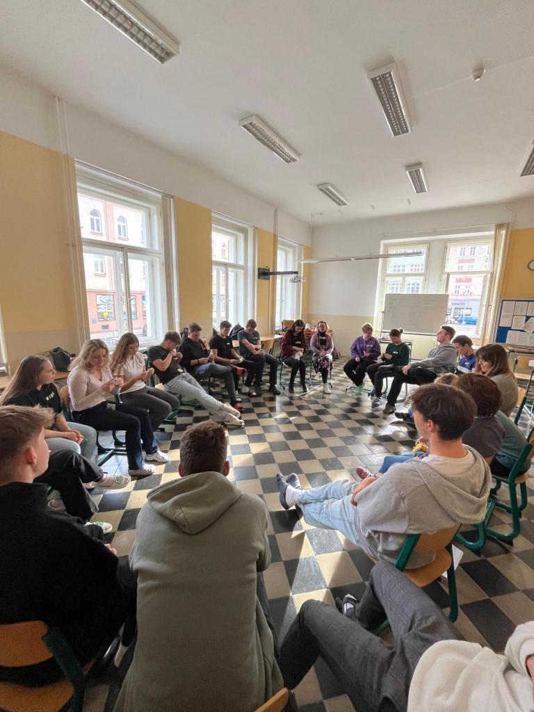 Obě třídy 4. ročníku strávily celé dopoledne s pracovníky a klientkou táborského FOKUSu. Tato organizace poskytuje odborné služby lidem, kteří se potýkají s duševní nemocí.