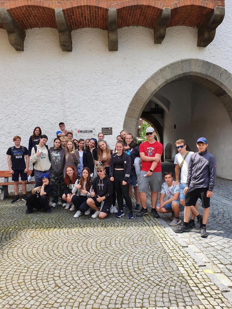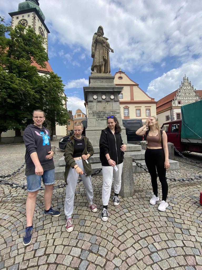 Dne 14. května jsme se v rámci hodin českého a anglického jazyka vypravili na kulturně-historicky-jazykovou exkurzi po Táboře. Počasí se zpočátku netvářilo přívětivě, ale nakonec se umoudřilo a dokonce nám i svítilo sluníčko. Trasa byla protkána přibližně 25 stanovišti. O každém jsme si něco pověděli a dané místo se pokusili i umělecky zachytit na fotce. Rádi bychom se s Vámi o naše zážitky z této akce podělili.