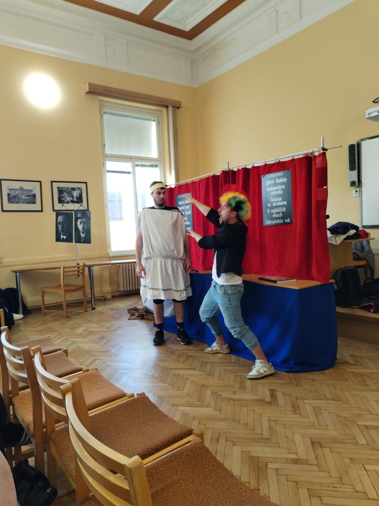 Žáci 3. a 4. ročníku si díky představení Divadélka pro školy z Hradce Králové zábavnou formou připomněli našeho nejslavnějšího prvorepublikového spisovatele a dramatika. Prostřednictvím odlehčeného komentáře a několika hraných ukázek se zapojením publika byly přiblíženy zásadní okamžiky života a tvorby Karla Čapka.