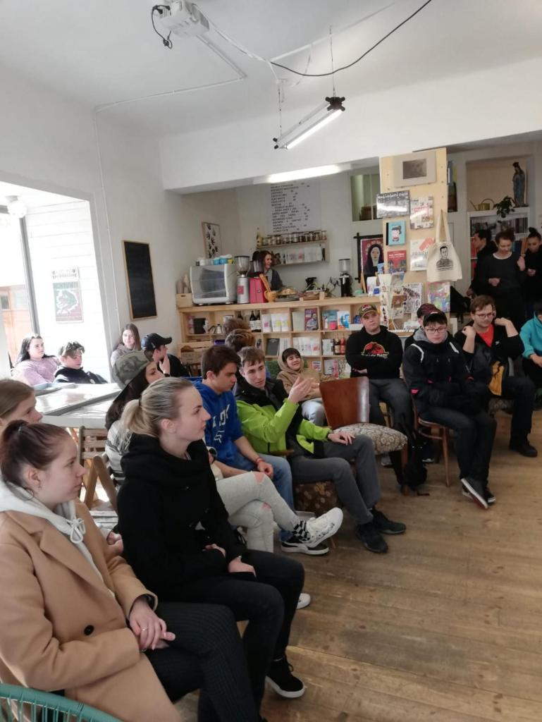 V pátek 8. dubna se žáci druhých ročníků sešli na literární besedě s Karolínou Zoe Meixnerovou. Tato mladá influencerka (cojezoe), popularizátorka české literatury 19. století, nám zábavným způsobem sdělila mnoho informací ze soukromého života Boženy Němcové a Karla Havlíčka Borovského.