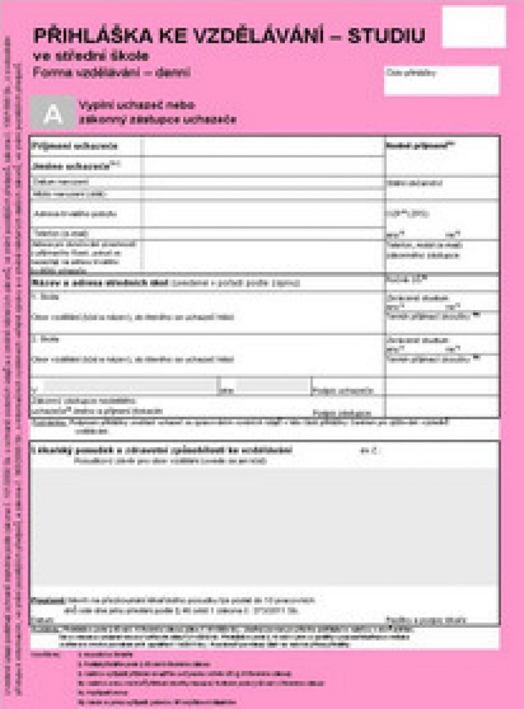 2. Řádně vyplnit všechny kolonky přihlášky – nezapomenout rodné číslo uchazeče, telefonický a mailový kontakt na rodiče uchazeče, máte-li datovou schránku - nezapomeňte vypsat do přihlášky její ID.