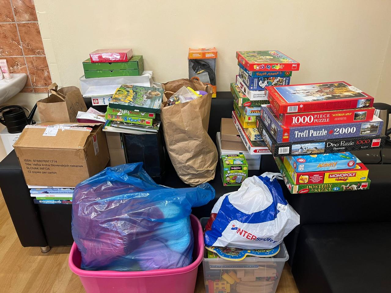 Díky štědrosti našich žáků, rodičů i zaměstnanců školy se podařilo shromáždit velké množství hraček, knížek a dalších potřebných věcí. S radostí oznamujeme, že všechhny vybrané předměty byly již předány do Šatníku, kde najdou své nové majitele.