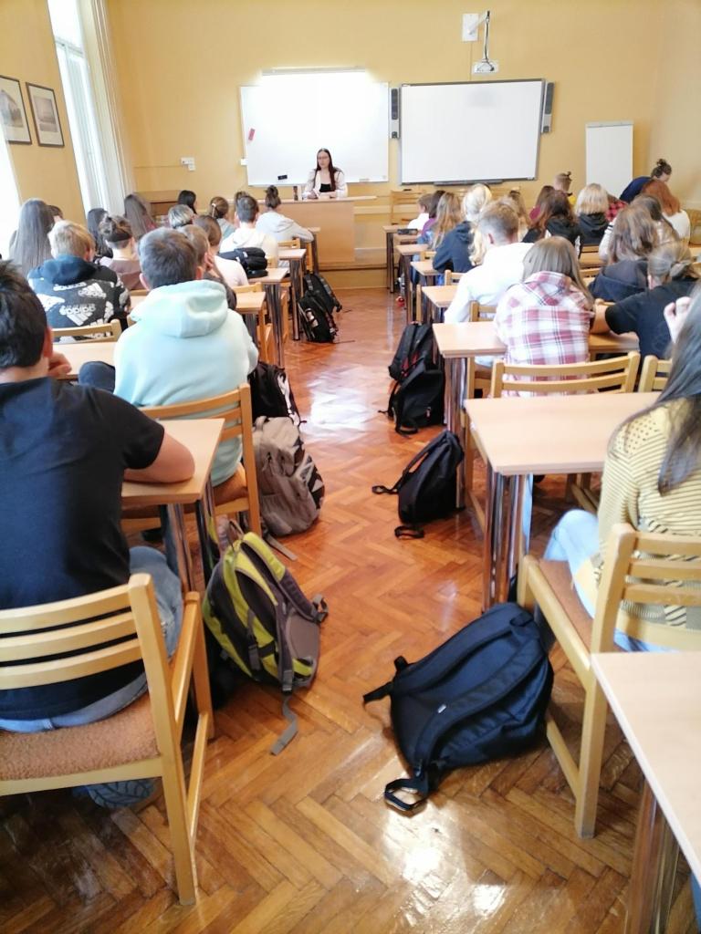 V pátek 21. 10. 2022 se v aule naší školy konalo setkání studentů 1. ročníku se spisovatelkou Hanou Lehečkovou, oceněnou literární cenou Jiřího Ortena. Autorka v rámci akce Spisovatelé do škol představila svou knihu Poupátka. Toto dílo inspirované autobiografickou zkušeností Hany Lehečkové otevírá téma nezletilých obětí sexuálních predátorů. Jak spisovatelka řekla při debatě se studenty, kdyby svou knihou pomohla i jediné oběti sexuálního zneužívání, měla práce nad knihou smysl.